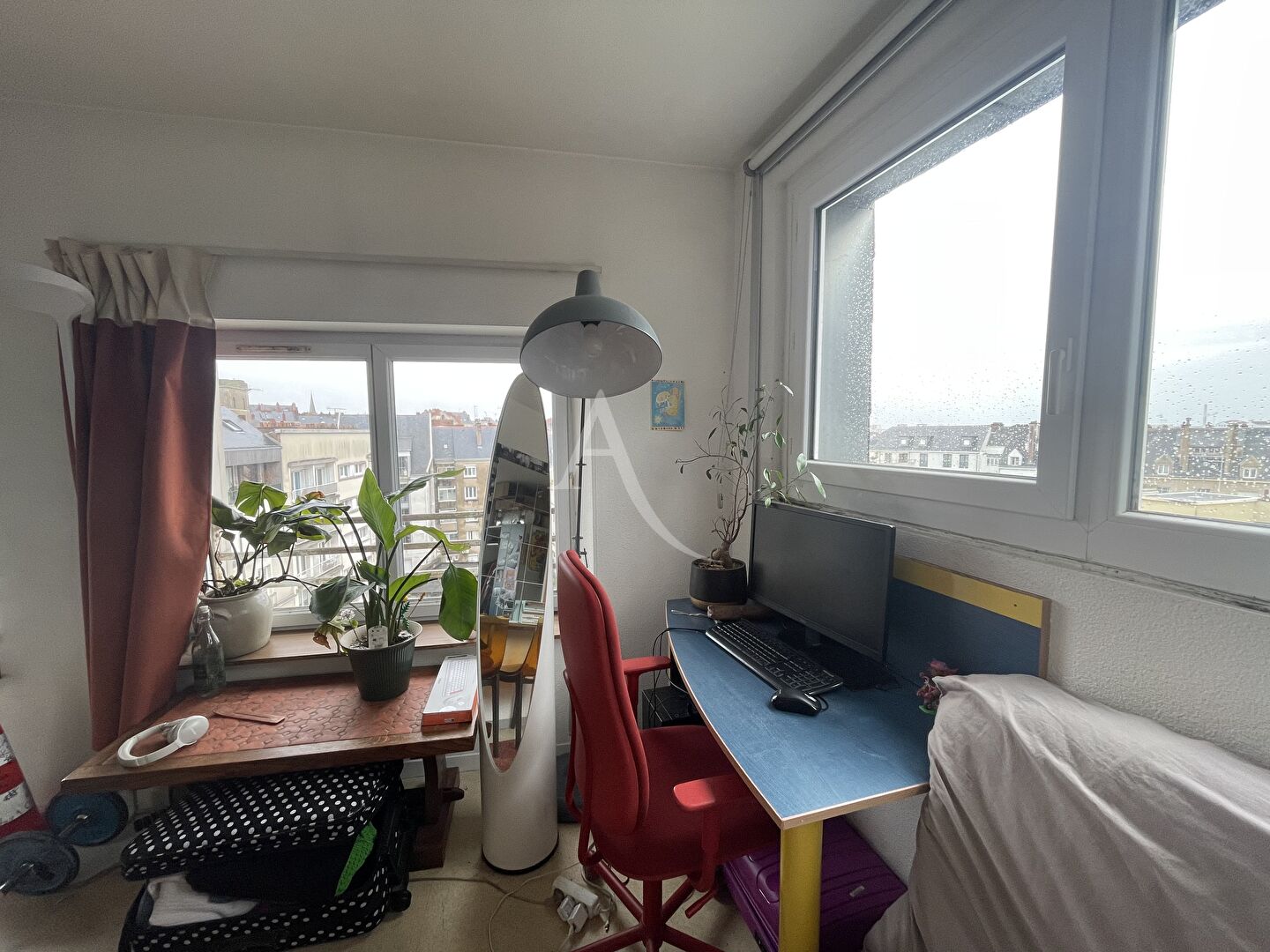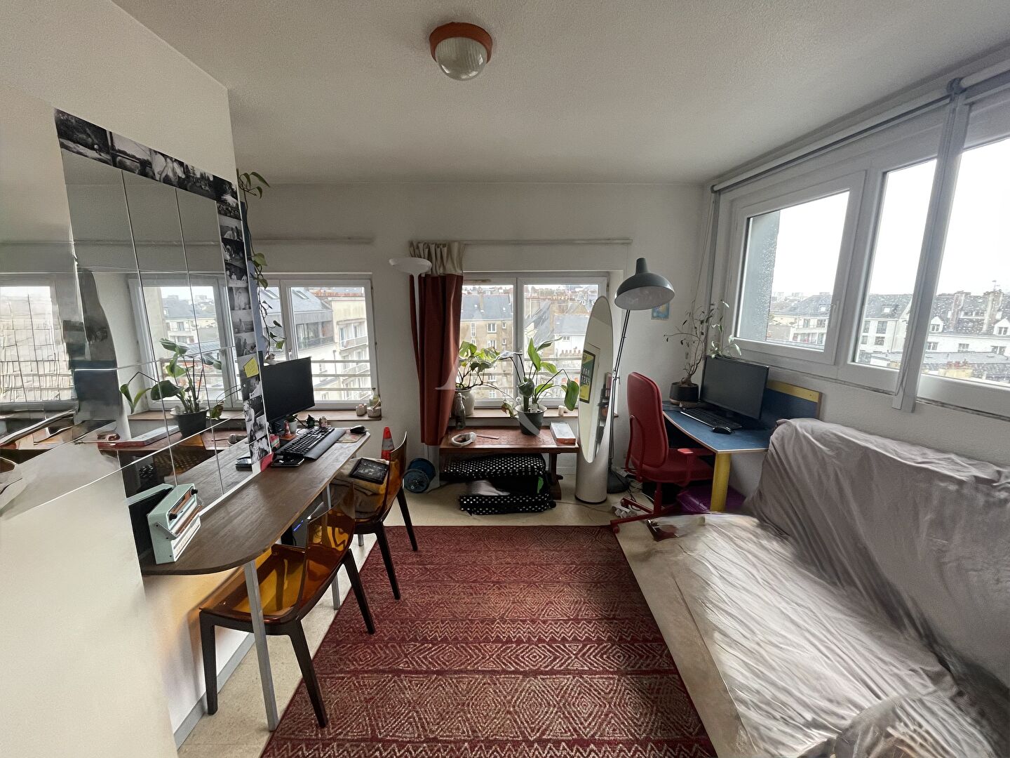 L’appartement, situé au sixième étage, est doté d’une vue panoramique sur la ville. Il se compose d’une pièce de vie avec kitchenette et d’une pièce d’eau avec douche et WC.