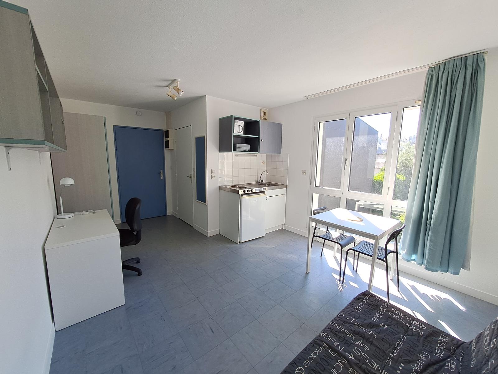 Résidence étudiante rue Pitre Chevalier - Studio de 18.26m² meublé comprenant une entrée sur pièce de vie, une kitchenette aménagée et équipée, une salle d'eau avec WC.